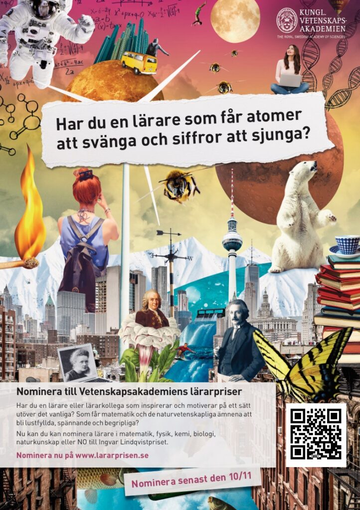 Känner du en lärare som gör skillnad i klassrummet? Som får naturvetenskapliga ämnen att bli lustfyllda, spännande och begripliga? Nu kan du kan nominera lärare i matematik, fysik, kemi, biologi, naturkunskap eller NO. Du är välkommen att nominera oavsett om du är elev, lärarkollega, rektor, förälder, eller bara känner en riktigt bra lärare!